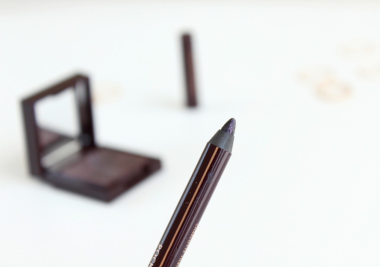 As for the liner, I've heard mixed reviews about these with some people really disliking them. I found my liner to be okay. In some lighting it can look almost black but when it catches you can see that it has a lot of purple glitter running through it. It's a really pretty colour and unlike the shadow, does translate well on the lids. The downside here is that the formula of the pencil itself is nothing spectacular. I think it's very average. It's fairly creamy but not overly so and the glitter can come across as ever so slightly chunky with some migration of particles throughout the day. It's not completely smudge-proof but does wear well on me for a number of hours. With the full size Rock 'N' Kohl eye pencil retailing for just over £15 in the UK, I'd say that unless there was a shade that you simply must have, I'd spend my money else where.